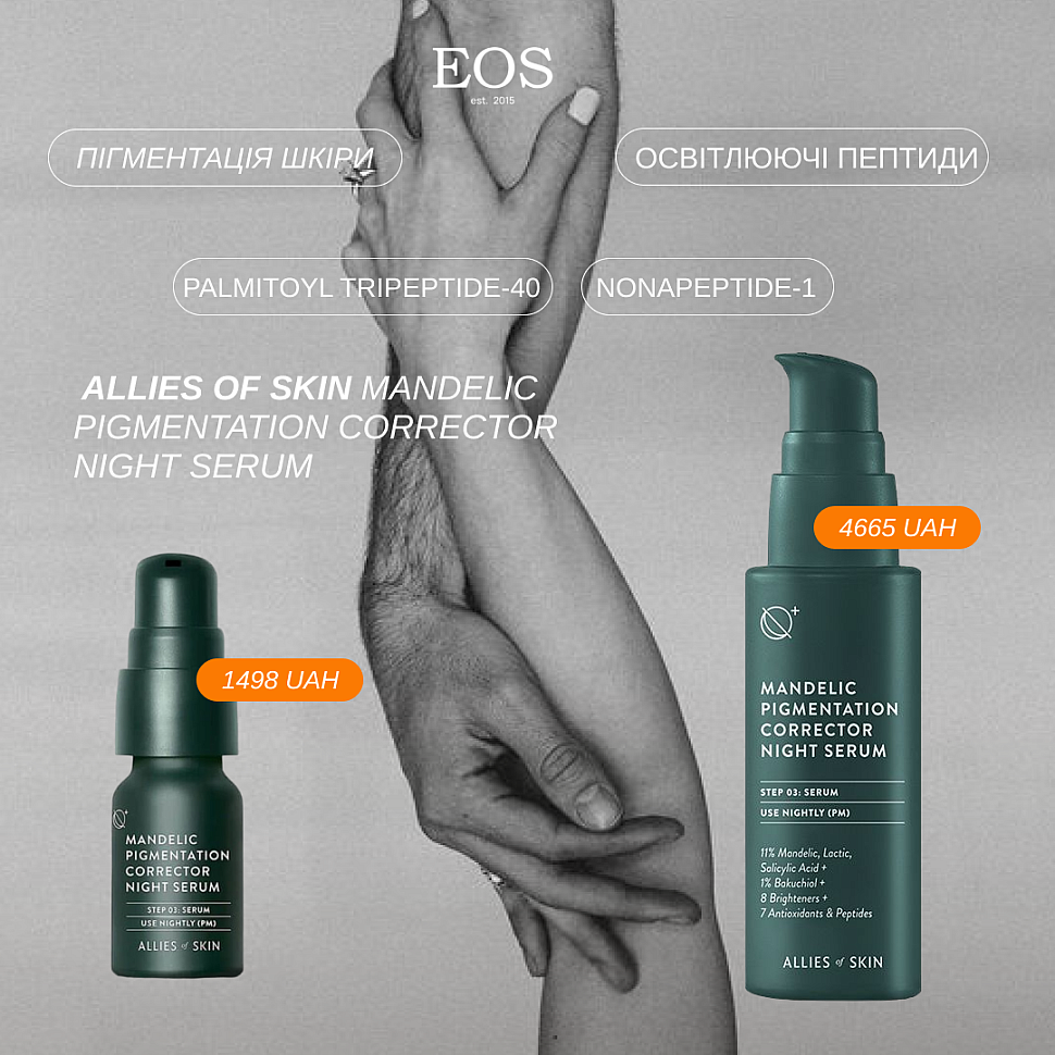 - Nonapeptide-1 (Melanostatine) - це пептид, отриманий з меланоцитстимулюючого гормону (МСГ). Він запобігає активності тирозину в меланоцитах, пригнічуючи синтез меланіну, і допомагає вирівняти тон шкіри, зменшуючи гіперпігментацію.