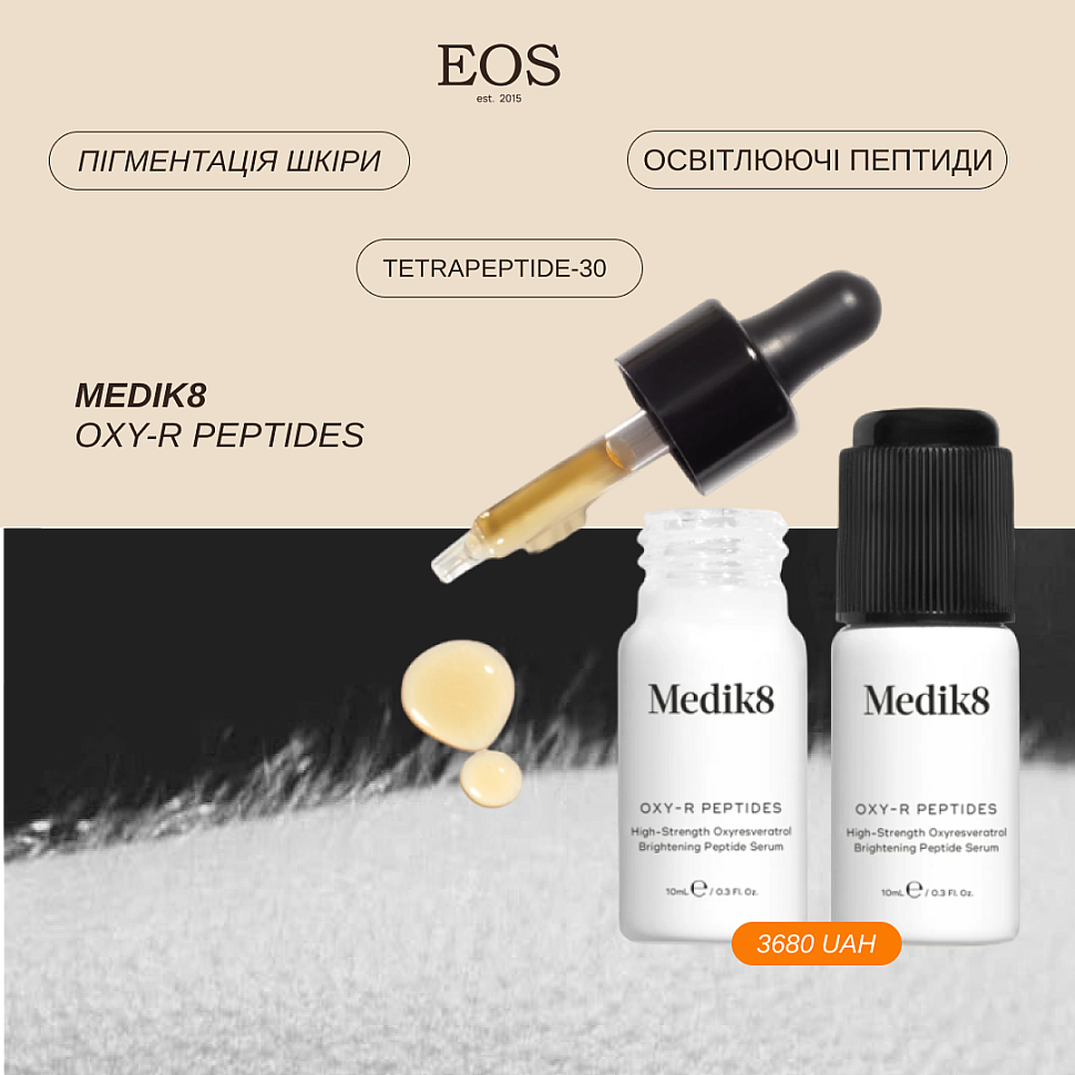 - Tetrapeptide-30 - він діє як інгібітор тирозинази (відомого ферменту, необхідного для створення меланіну), а також блокує перенесення меланіну у верхні шари шкіри.
