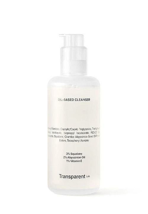 - TRANSPARENT LAB Oil-Based Cleanser — олія для зняття макіяжу, яке не пошкоджує ліпідний шар. Легко видаляє навіть водостійкий макіяж і залишає шкіру м’якою та доглянутою.